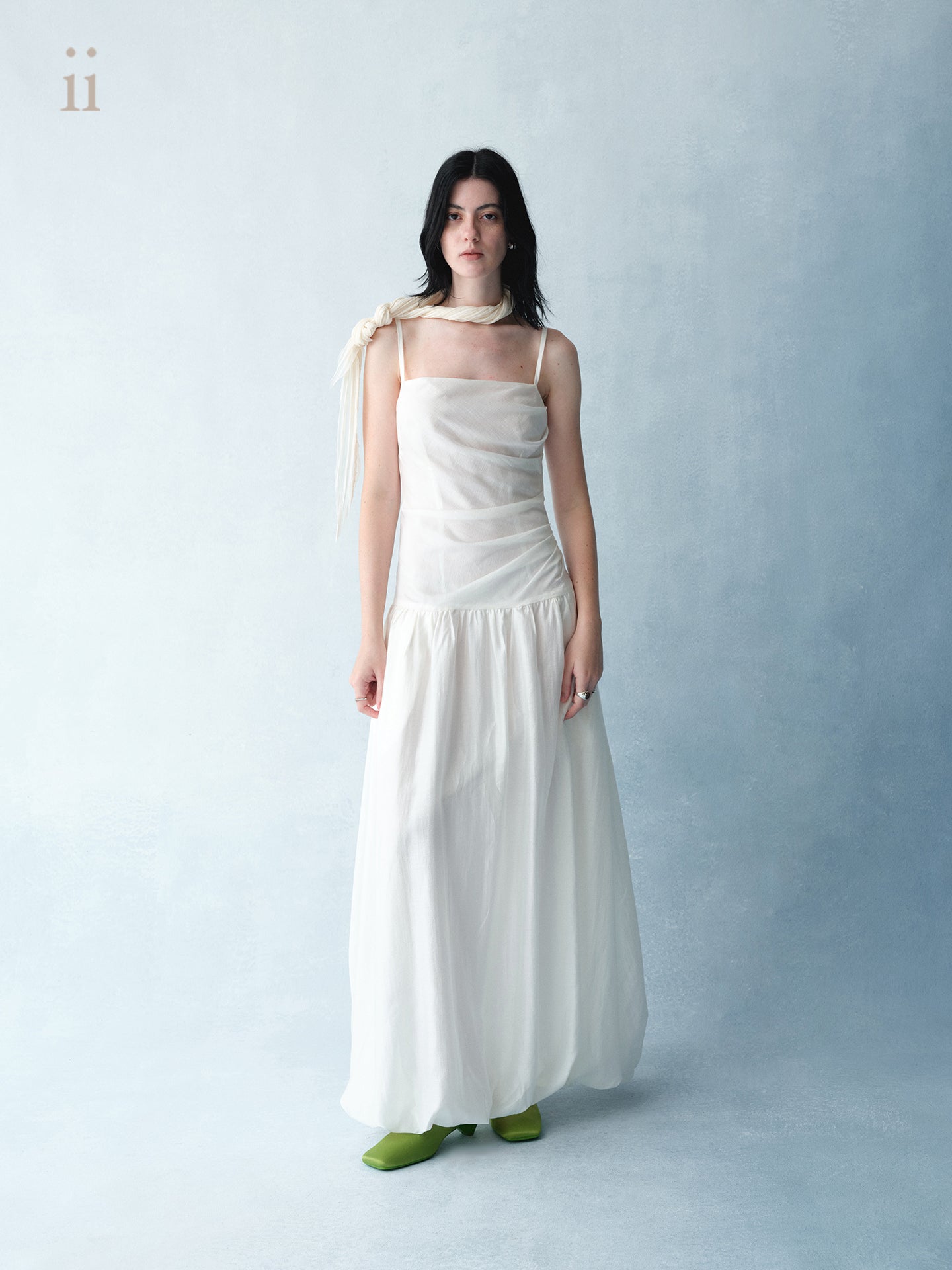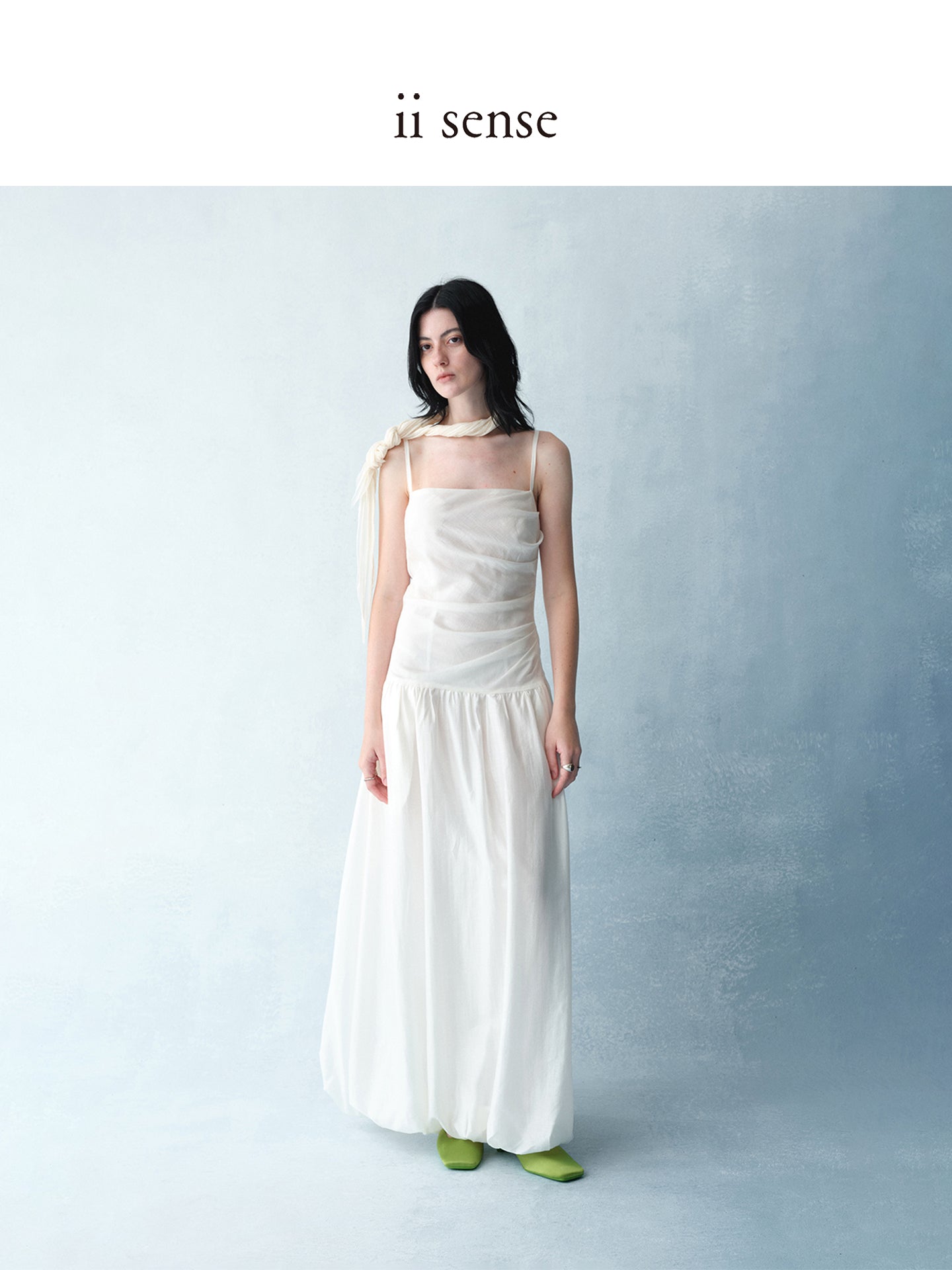 Made of light and soft chiffon and Tencel, this skirt features a bias-cut, pleated design and an elegant tulip shape, perfect for a light and airy early spring look.