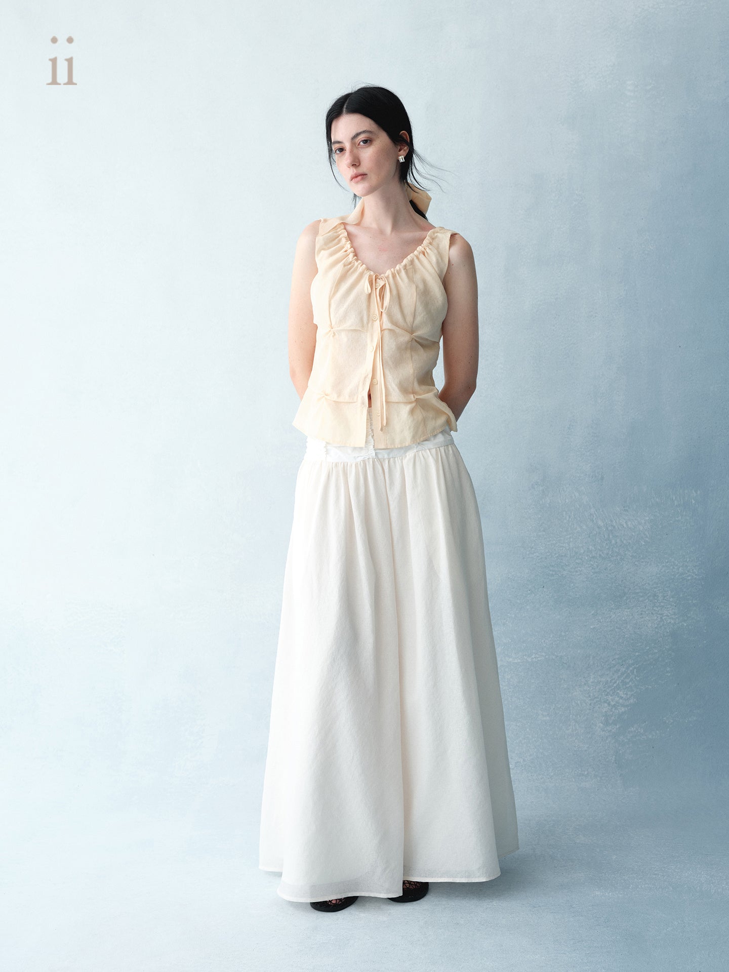 100% paper-like pure cotton, paired with imported Japanese chiffon,Unique pleated waistline, flowing and natural lower hem shape,Relaxed and elegant, delicate and retro.